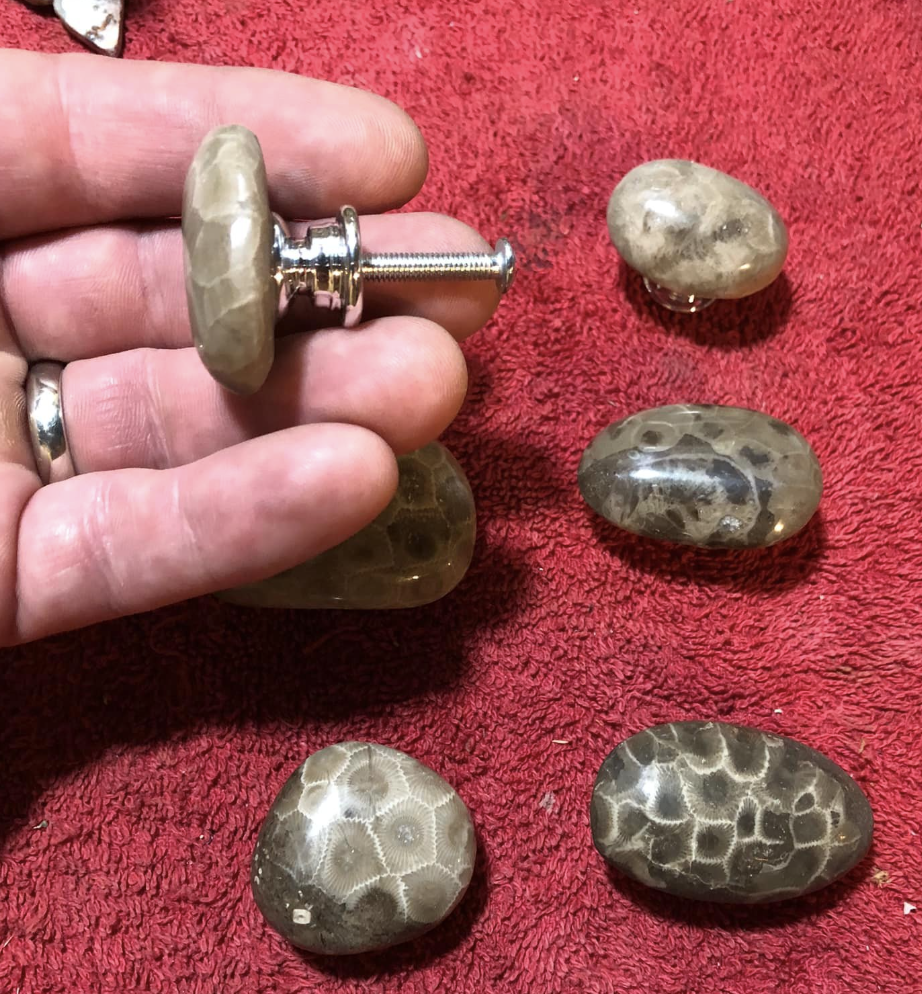 Stone cabinet pulls bring a touch of natural elegance to any kitchen or bath. Each piece is hand-cut and polished, creating a functional accent that combines durability with the unique beauty of real rock.