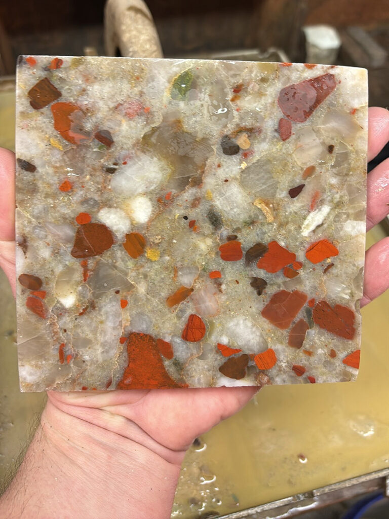 Puddingstone is uniquely beautiful — and uniquely challenging. Matthew’s experience with this distinct natural stone ensures every piece is cut with care, precision, and an understanding of the patterns that make puddingstone so striking.